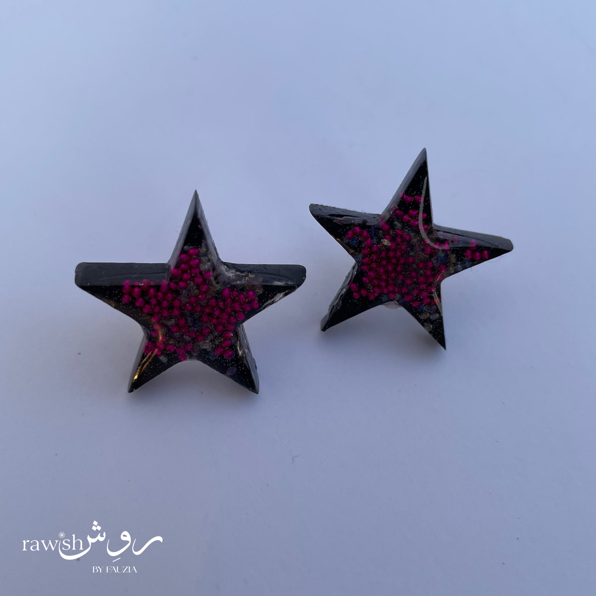 Black star studs with pink rhinestones
