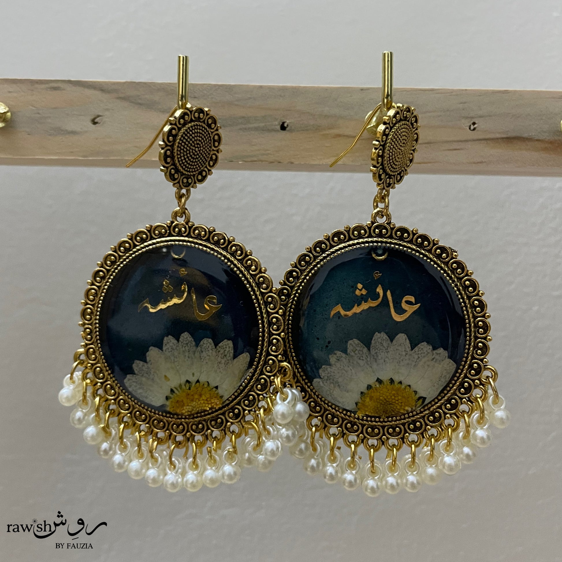 Elevate your style with our Customizable Name floral Jhumkas! Crafted with your personalized name in resin, this statement piece adds a pop of color and sophistication to any outfit. Tailor it to your liking and make it a timeless addition to your collection.