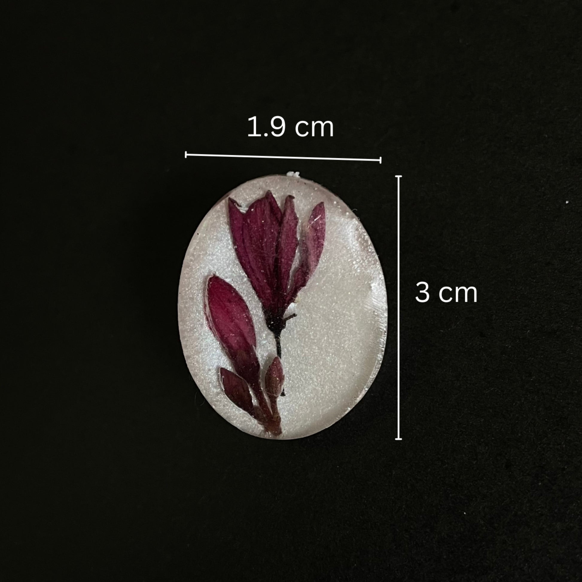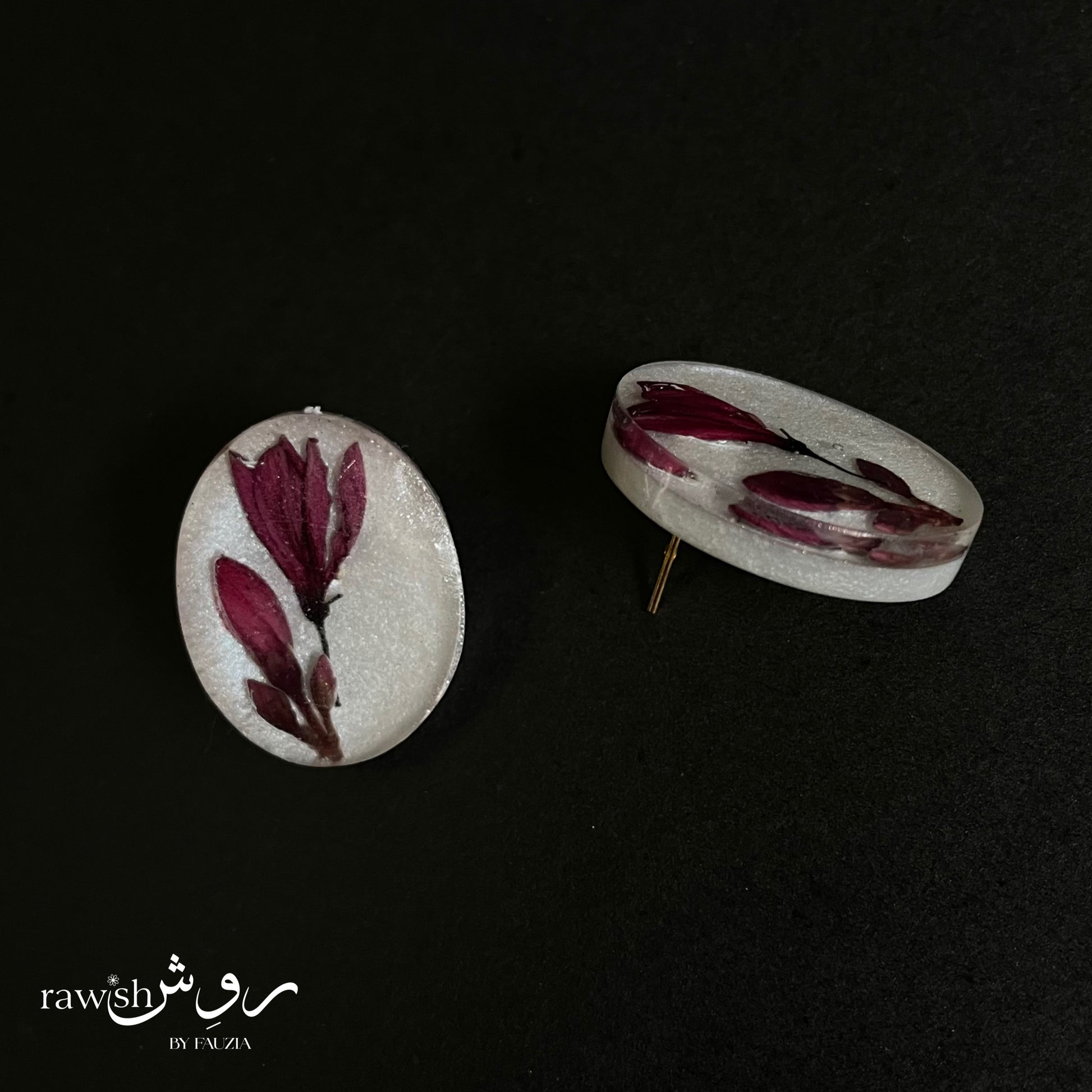 Elevate your style with these elegant Pearl White Oval Earrings, featuring a delicate dark pink flower preserved in an off-white resin base. Their unique oval shape adds a touch of sophistication, making them the perfect accessory to enhance any outfit with subtle charm and natural beauty.
