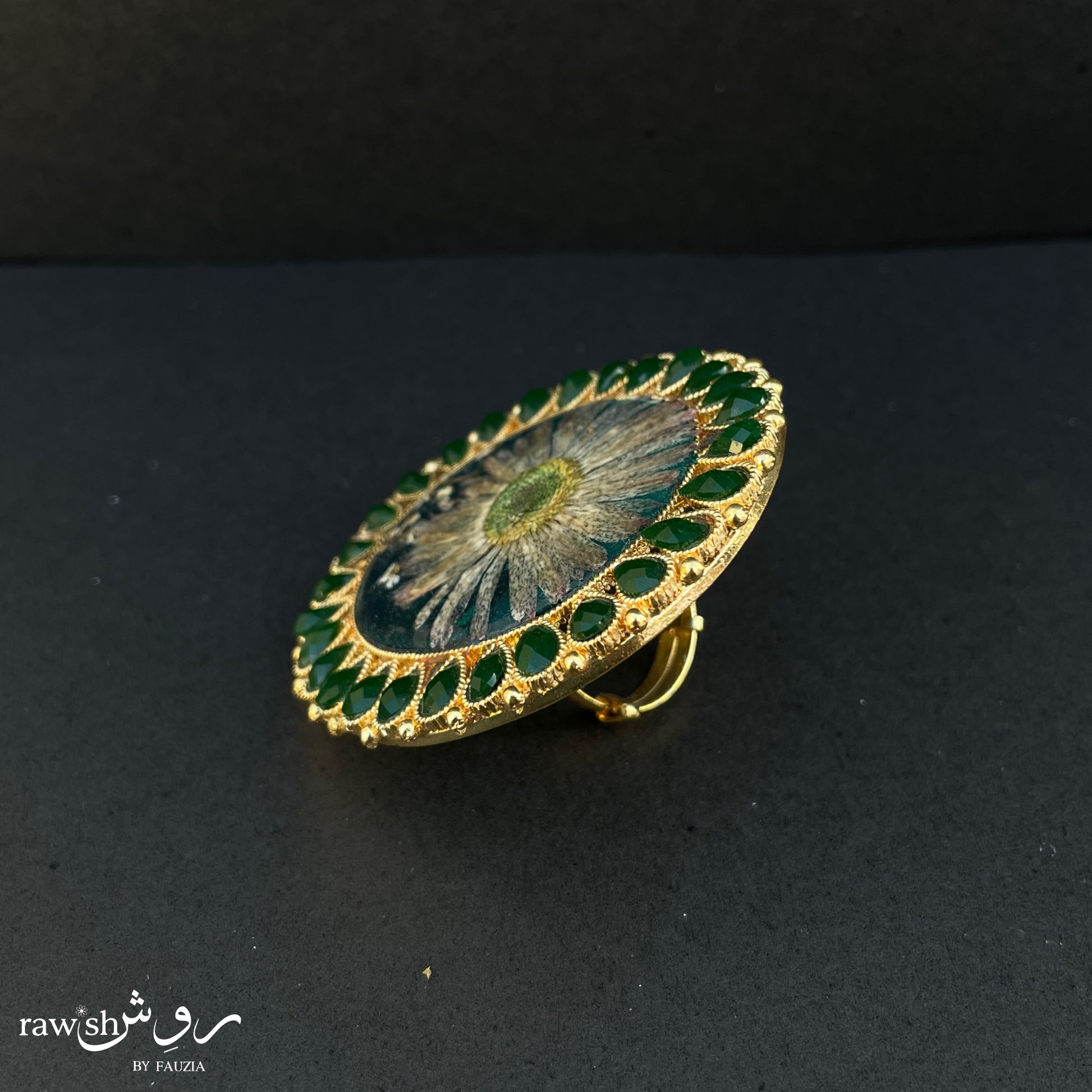 Make a bold statement with the Royal Green Large Floral Ring, featuring real flowers preserved against a rich green background. This eye-catching piece reflects your unique style and appreciation for nature, ensuring you stand out with elegance and charm wherever you go.